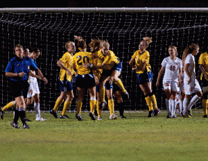 The UC Irvine women’s soccer team handed the 17th ranked Oregon State Beavers its first loss of the season in Friday night’s 2nd match of the Anteater Invitational. UCI improved to 7-1-2 as Coach Scott Juniper’s Lady Anteaters dominated on the defensive side. Limiting OSU to two corner kicks, UCI recorded their fourth straight shutout of the season.