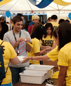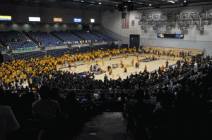 UC Irvine became the proud owners of the Guinness World Record for the largest game of dodgeball played on September 21, 2010. The dream of sophomore Sam Shaw, the world record previously held by the University of Alberta was broken when 1,745 Anteaters swarmed the Bren Events Center. After students celebrated the new tradition of the Blue and Gold spirit rally consisting of an introduction to all the sports teams and ecstatic bursts of dancing, the hour-long game consisting of a blue team and a gold team commenced. New University photographers Alex Yee, Brian Kim, and Nikki Jee were on the scene to capture this amazing celebration of the UCI spirit.