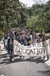 Hundreds of UCI students marked the first day of the academic calendar last year by demonstrating against system-wide budget cuts at a midday rally. Sparked by the $77 million cut to UCI’s budget and the mounting fee hikes, the protest included teach-ins, a walkout and speakers at the flagpoles.