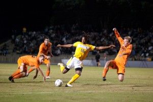 After being outscored by the Anteaters 10-3 in both regular season meetings, including a 7-2 spectacle on Oct. 23, the Titans held UCI to one goal on 18 shots. Cal State Fullerton was led by the tremendous goalkeeping of reserve goalie Bryan Escalante, who had never started a game before in his career. Escalante finished the game with seven saves, while UCI’s indispensable keeper Andrew Fontein only came up with three.