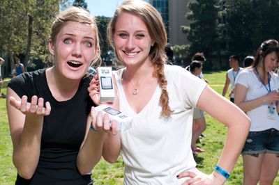 Scott Cashin and Aaron Pecson get into the spirit of things as they compete by kissing a box for a free iPad during Beta Alpha Psi and the UCI Computerstore’s Kiss an iPad competition on Thursday, March 31st.