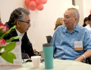 Manuel Gomez speaks with Professor of the Year winner Caesar Sereseres at the 2011 Teaching, Learning & Technology Celebration of Teaching Awards Ceremony, currently in its 18th year. The award is given to professors and lecturers selected from over 60 nominations from across campus.