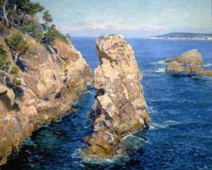 The current exhibition, “The Nature of Water,” is timely with the nature of our state’s drought problem, as well as a ruminating reminder of the vast geography available to us in California. Almost every microcosm of the state’s geographic terrain is envisioned in this collection, from the bright, sandy beaches of Southern California, the high snowcapped Sierra Nevada mountains, the desolating beauty of the Mojave Desert and even the evergreen forests of Yosemite and the Central Valley. In accordance with the Impressionist style, each of the paintings create an instantly recognizable image of these landscapes from afar, with a multitude of fleeting details and brushstrokes for a closer look.