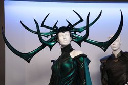 My favorite outfits to see were the ones from the movies I most enjoyed from the past year. The one piece of exhibit I hurried in to see, besides the main “Wonder Woman” display, was “Thor: Ragnarok.” You could see the grand black-horned crown of the goddess Hela all the way from the entrance, as the platinum green and black costume on the mannequin loomed over those passing by. She drew you straight in at first sight, standing in front, almost leading the costumed figures behind her, such as Thor and Loki. Mayes C. Rubeo did an amazing job, with Director Taika Waititi lending a creative hand in its development as well.