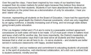 Student Board Member Tyler Okeke released a statement regarding concessions between Los Angeles Unified and UTLA.