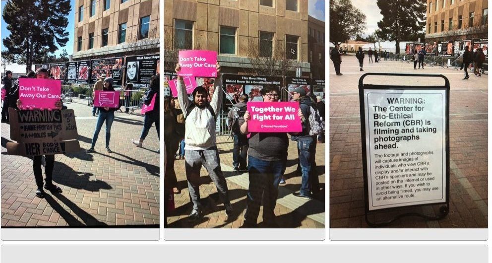 The group, who identified themselves as advocates of the Center for Bioethical Reform (CBR) a privately funded, non-profit, secular corporation established and located in Orange County, arrived on campus on Feb. 20.