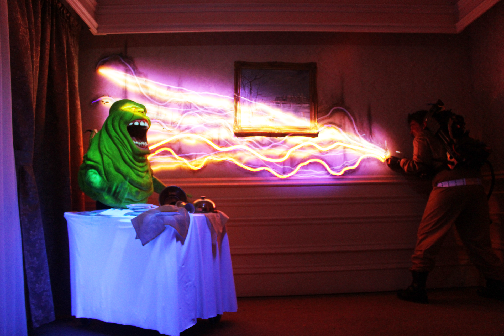 Murdy continued on to say that “Ghostbusters” is a different experience in that it is more of a “fun scary,” which is pushing the boundaries of what’s acceptable to do in haunted attractions. Throughout the “Ghostbusters” maze, you are not necessarily on edge, but rather, you are intrigued and interested, looking at the stunning visuals, quirky set, all while appreciating the actors’ performances.