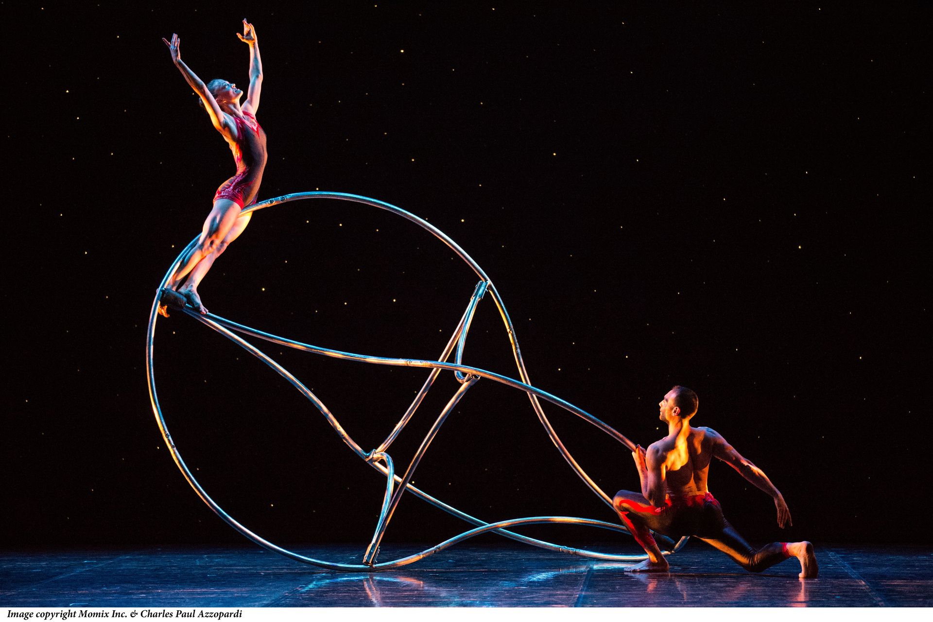 Another high point was the “Dream Catcher” segment, which involved the use of a metal contraption that had a gyroscopic-like design. The two performers involved worked in tandem, balancing on the designed ‘dream catcher’. It appeared like a more intense version of seesaw as the two alternated between rising and falling under the contraption. However, there was great control in each movement which was showcased near the end of the segment when two performers split off and then from where they lay on the ground, rolled the metal object back and forth to each other. There was an inherent tension and great payoff with every pass.