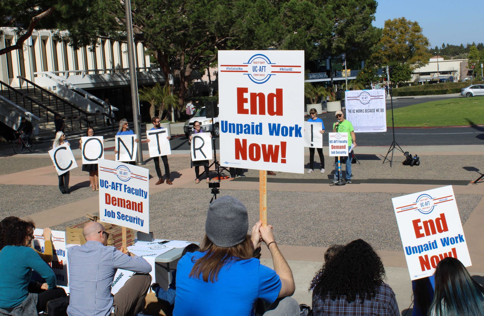 “UC admin wants to lay us off with only 14 days notice at any time before or after our classes begin. We’re fighting for stronger layoff protections because they protect students from having their essential courses canceled.”