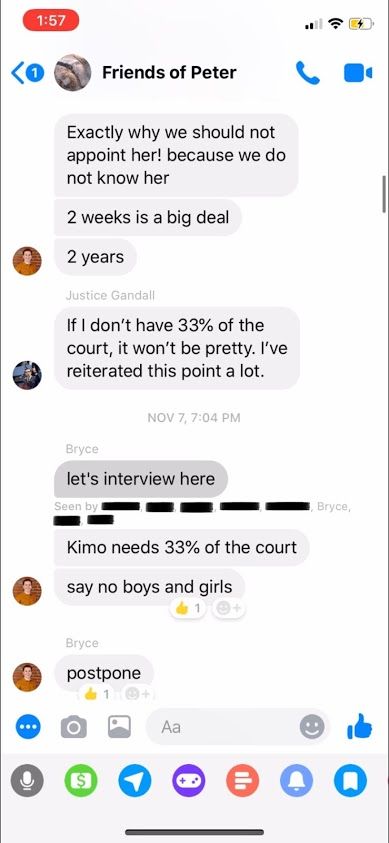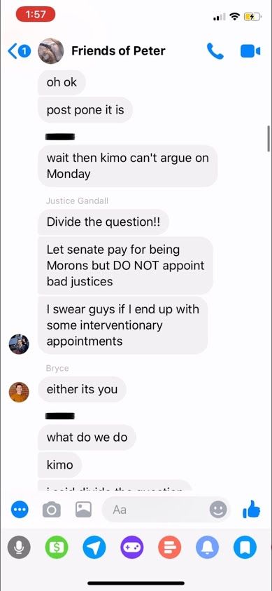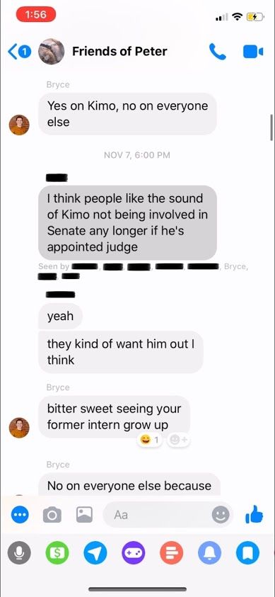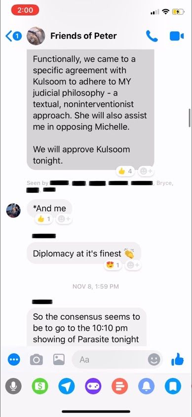 However, the evidence shows that the senators in the Friends of Peter group chat — which Gandall was a member of —  were discussing the appointment process. Gandall had access to all of their messages.