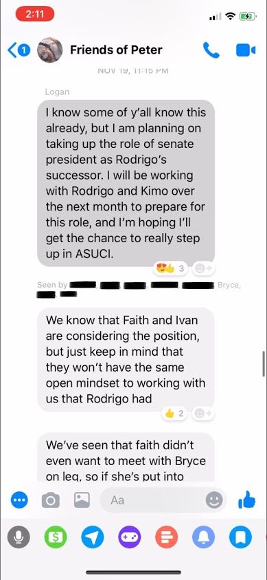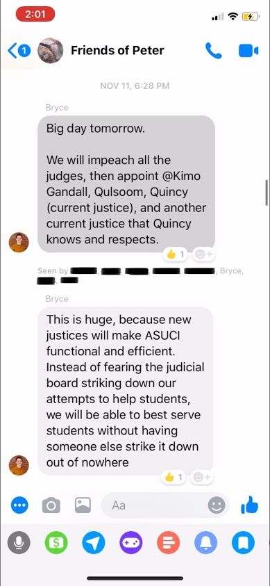 Messages Reveal Alleged Misconduct From ASUCI Senate Members And ASUCI Associate Justice