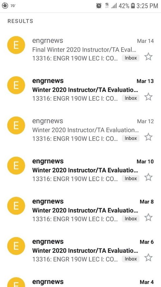 Other engineering-wide emails — like those regarding coronavirus and the transition from in-person to online engineering classes — have been sent through ZotMail.