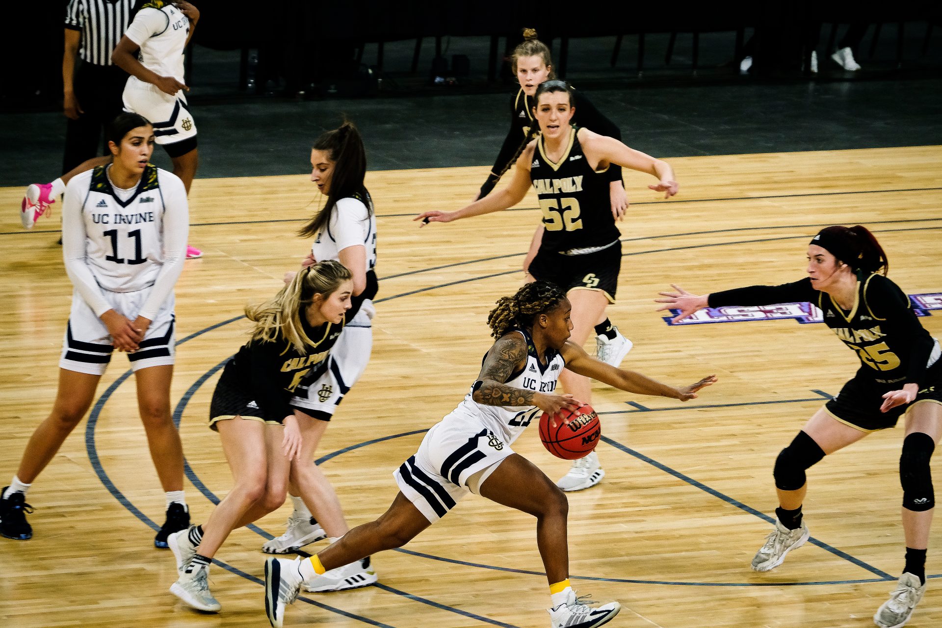 The No. 2 seeded UCI Anteaters (15-8, 11-4) were eager to survive another night in the 2021 Air Force Reserve Big West Women’s Basketball Championship, presented by the Hawaiian Islands, against the dark horse No. 6 seeded Cal Poly Mustangs (13-11, 8-8) at the Michelob ULTRA Arena on March 12.