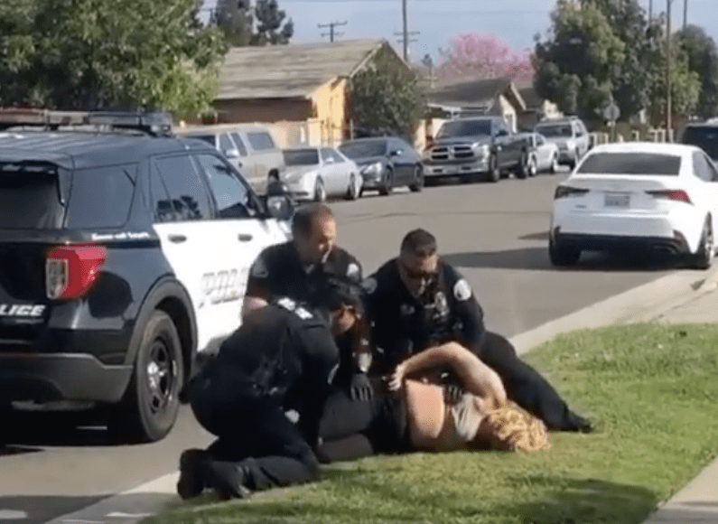 In a video of the incident recorded by Armento, one of the officers can be seen punching the 35-year-old Garcia twice as she became more agitated, while two officers held her down. After the officer punched the woman, his fellow officers held him back.