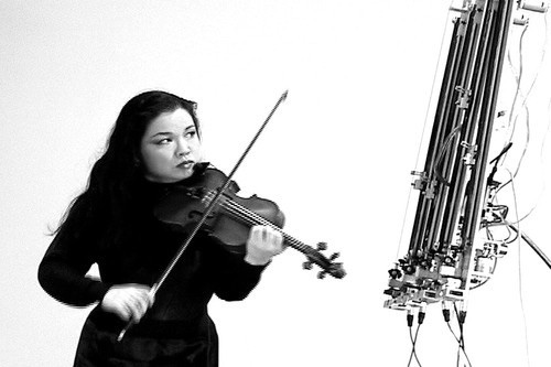 To say that the Claire Trevor School of the Arts professor Mari Kimura is one-of-a-kind is an understatement. An award-winning composer, violinist and instrumentalist, Kimura’s innovative approach to sound foresees vast technological advances in the world of music. Fusing the sonic capabilities of classic, contemporary violin and improvisational, interactive computer music into a distinctive sound palette of her own, Kimura continues to radically defy the standards of music and live performance.