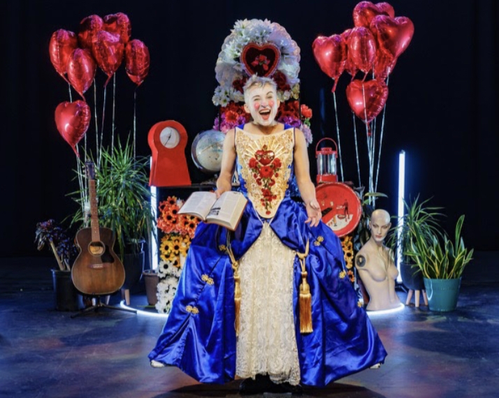 Though one may assume there’s only one person behind a one-man show, Metcalf speaks incredibly highly about the collaborative efforts on “Mother of God.” They embody the performance aspect, taking the role of actor, writer and musician. However, there remains to be a team behind the overall beauty and artistry of the show: Sarah Jo Monaghan is behind the extravagant costume and makeup design; Nita Mendoza is the lighting designer; Ezra Anisman is the sound designer; Nettle Ada uses their visual art expertise on the piece and designed the cover art; Heather Bennett stage manages; and Lucas Esperanza-Goodman serves as the director.