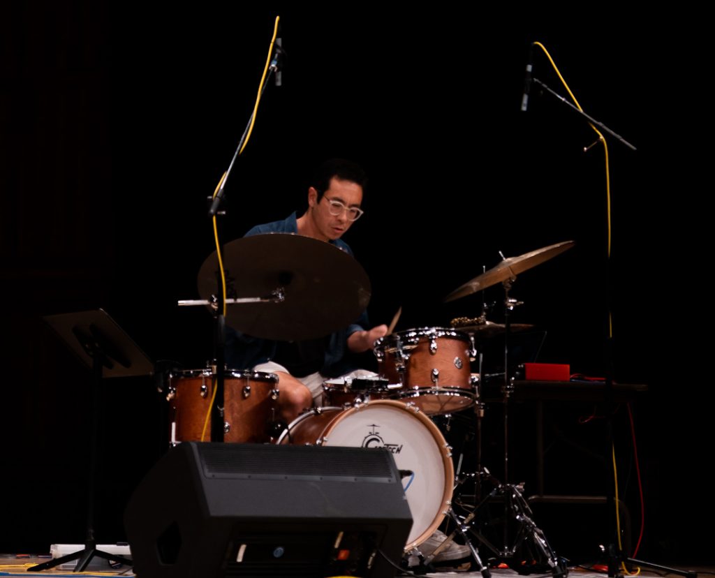 All four of the concert’s pieces culminated in a swell of warbling vocals, thudding bass plucks and sporadic drum hits. When played concomitantly, the sound of Kidambi’s vocals and Nelson’s soprano sax resemble a conversation between friends, where moments of agreement are measured in simultaneous bouts of intensity and frustration. Kidambi’s vocals –– intimate, raw, erratic –– pitted against Jaffe’s complex time signatures and free-form percussive work, elicit waves of visceral emotion from the audience.