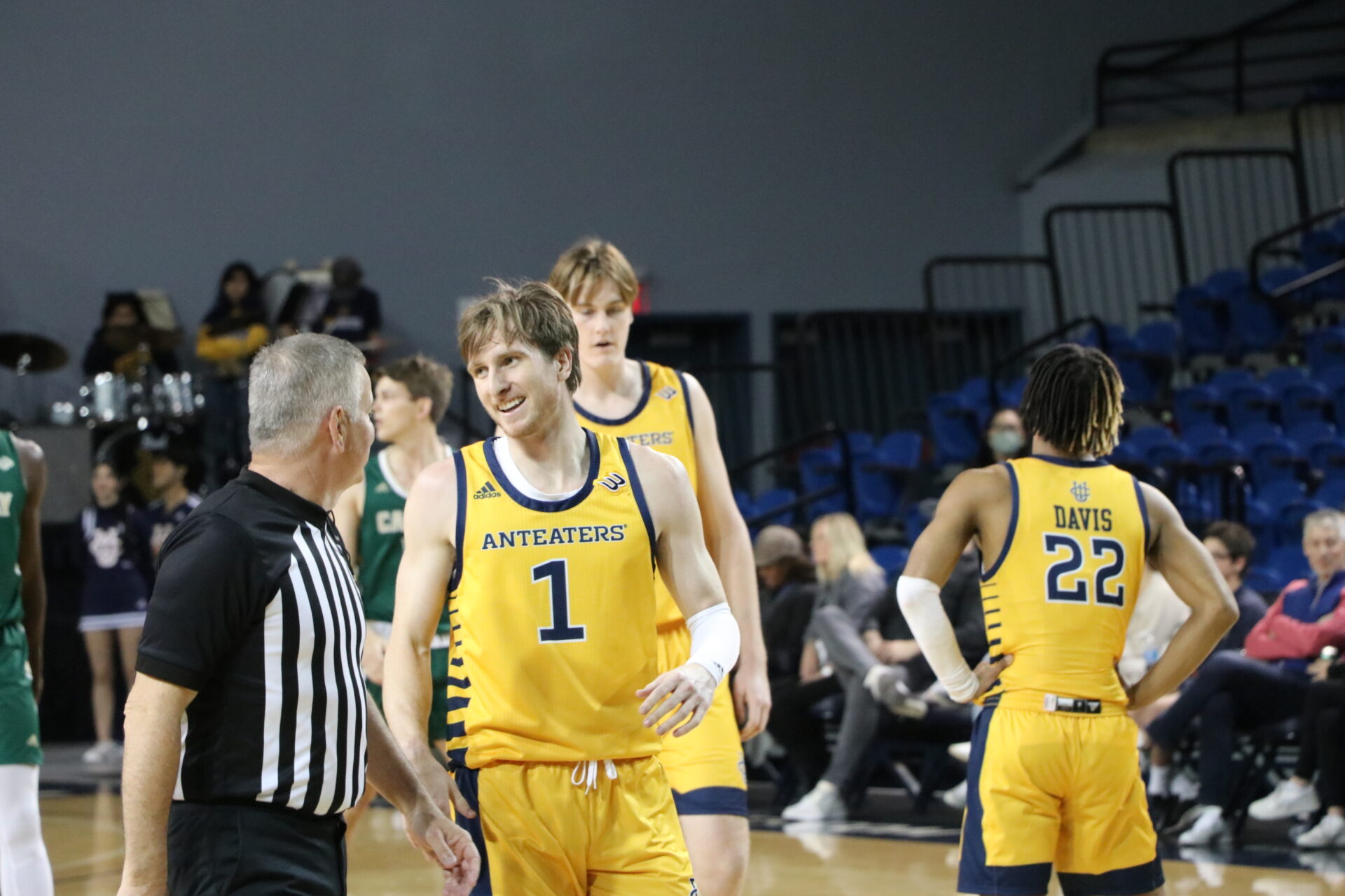 UCI was spearheaded by a three-pronged attack consisting of regular scoring leaders Davis and Baker, as well as a surprise performance by Leuchten. Davis finished the night as UCI’s leading scorer with 16 points, though Baker was not far behind with a dozen points of his own. Additionally, freshly-cleared Leuchten made his return from injury for the first time in eight games and wasn’t expected to produce much. However, he defied expectations and put in a gritty performance, playing big down the stretch for the ‘Eaters. He notched nine points and pulled down a game high of eight rebounds, including a game-clinching three-pointer with just over a minute left.