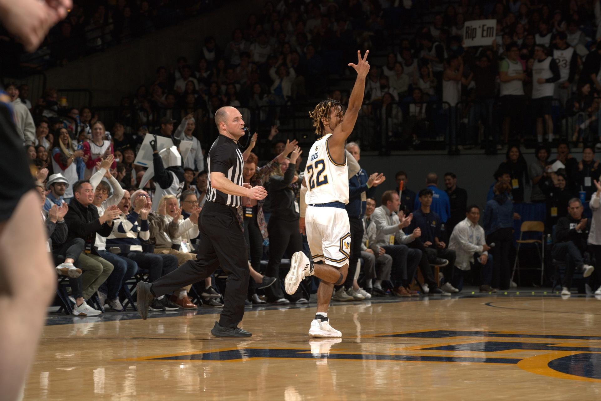 UCI’s largest lead was 19-13 with eight minutes remaining, but the Gauchos were never far behind. Throughout the half the Gauchos slowly but surely cut down on UCI’s lead and by the 2 minute mark the score was tied at 30-30.Much of the production on the Gauchos was attributed to sophomore guard Ajay Mitchell who drained his 15th point at 1:20 mark, putting the score at 30-32 in UCSB’s favor. In the final seconds of the first half, Davis received a 47-foot lob at the half-court and launched a miraculous hail-mary three to cut down the Gaucho lead to two, 33-35. Davis ended the half with 15 points, a single steal, a rebound and assist.