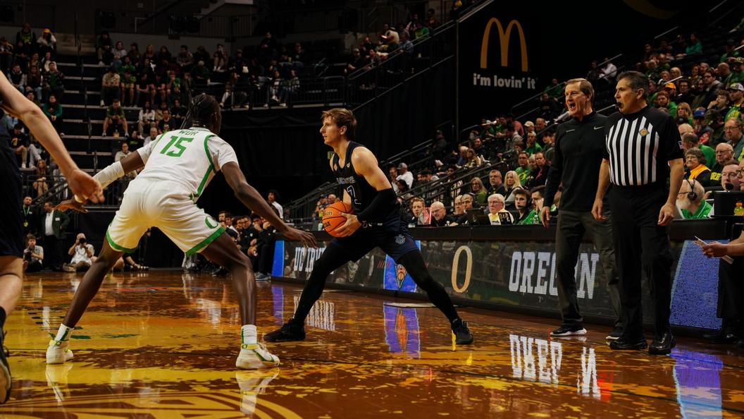 At the onset of the match, the ‘Eaters got off to a slow start, giving up back-to-back three-pointers from Oregon senior guard Rivaldo Soares and junior guard Keeshawn Barthelemy. An and-one bucket from UCI sophomore center Bent Leuchten cut the early four-point deficit to two. However, another Barthelemy three extended the lead to 12-9 at the first media timeout.