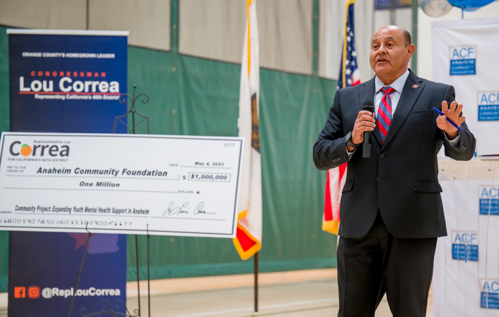 The city of Anaheim received a federal fund of $1 million dollars to help the city address the local youth population’s mental health crisis on May 4. U.S. House Representative of California’s 46th district Lou Correa revealed the check to city officials gathered in Anaheim’s Downtown Youth Center gymnasium.