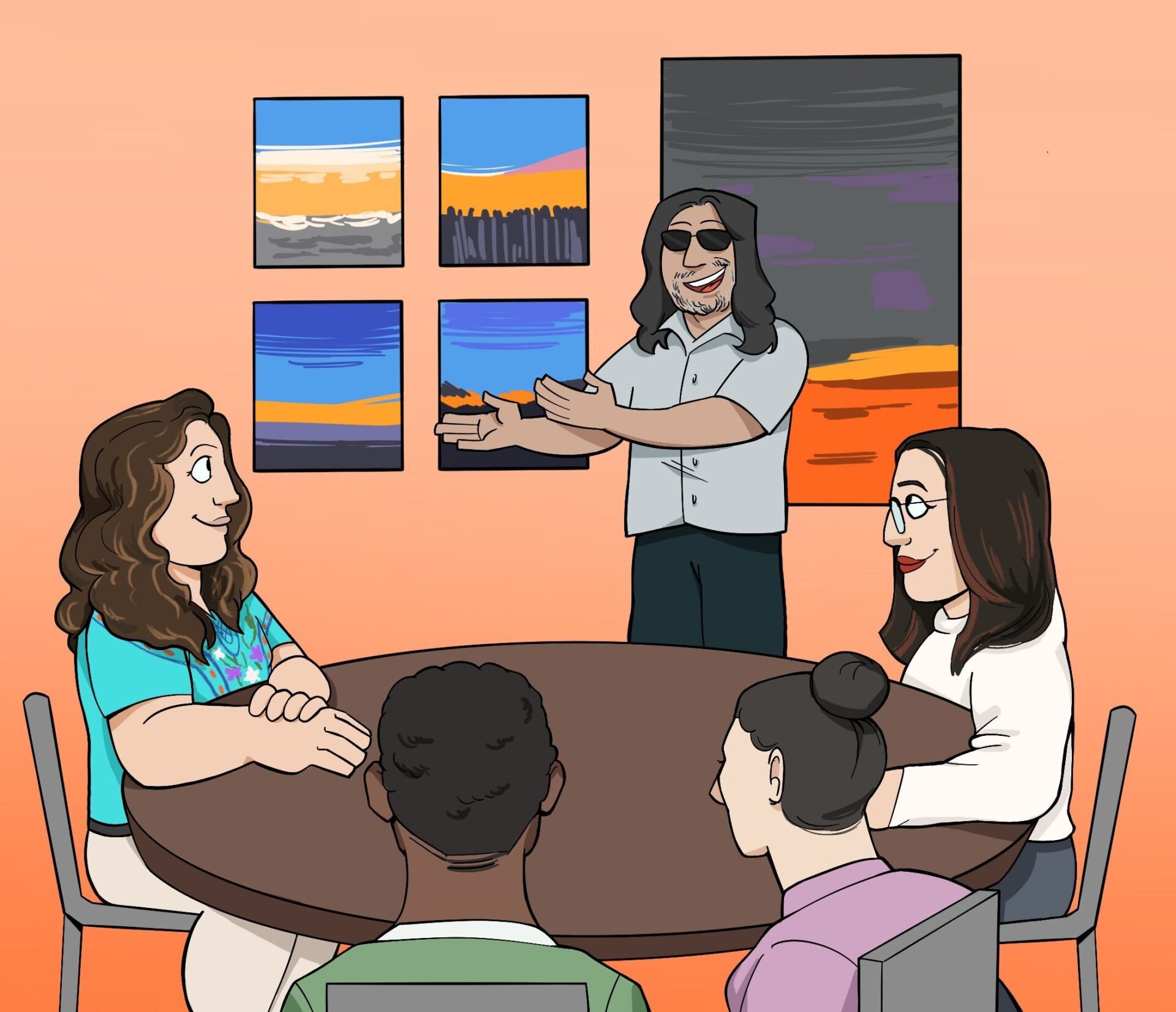 The LRC Art-in-Residence program develops partnerships between local Latino/Chicano artists and UC Irvine through displaying their work. The program was founded by LRC Director Adelí Durón in 2024. The same year, L.A.-based painter Ramon Ramirez’s artwork was put up for exhibition at the center on loan. During an art show at Chapman University, Ramirez proposed to lend Durón some of his art pieces to the LRC.